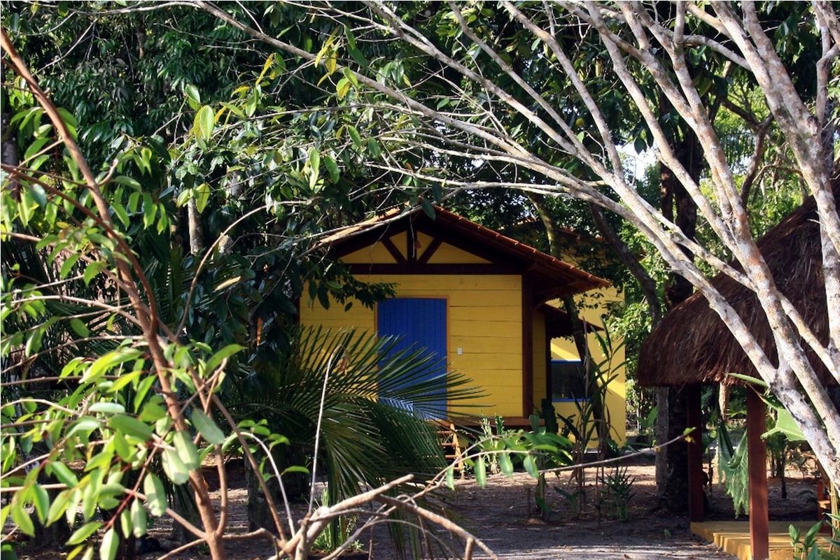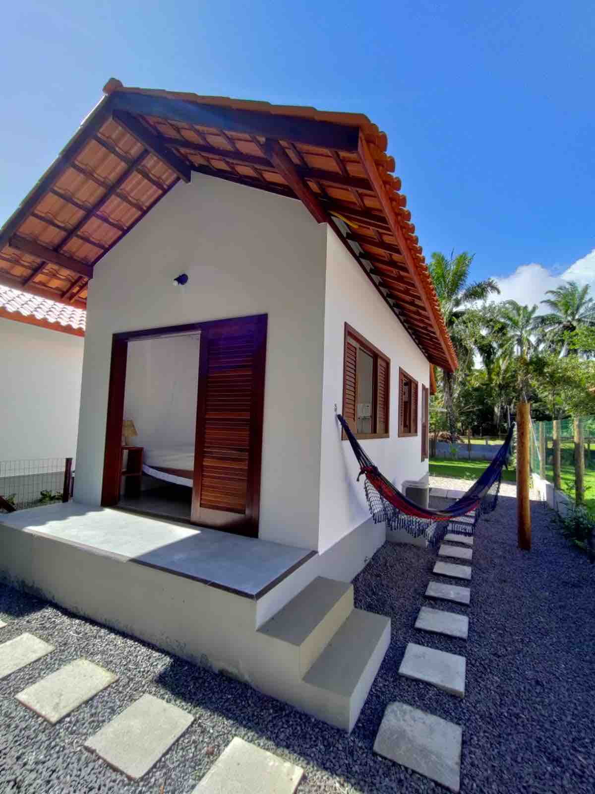 There are two wooden chalets on the beachfront. It's a simple, rustic, and traditional. It's located on Moreré Beach, facing the sea and natural pools. There are two small houses with a bed on the mezzanine, and underneath there's a hammock to relax in. There's a simple outdoor kitchen with a gas stove and sink. The kitchen space is shared between the two chalets. Both chalets have a private bathroom and hot shower.