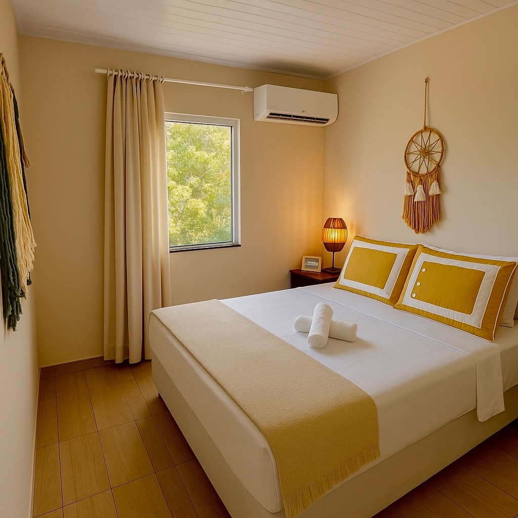 No alto do Morro de São Paulo, o Canto das Águas é um refúgio com vista para o mar e o pôr do sol de tirar o fôlego. Da praça central até aqui é uma caminhada de 15–20 min (1km), com algumas ladeiras e degraus. A recompensa é toda beleza natural exclusiva e privacidade. Ideal para casais, amigos ou viajantes solo que querem acordar com o azul do oceano. Estamos a 80m acima do nível do mar, com acesso do condomínio às trilhas para as praias Porto de Cima, Ponta da Pedra, Praia da Argila e Gamboa.