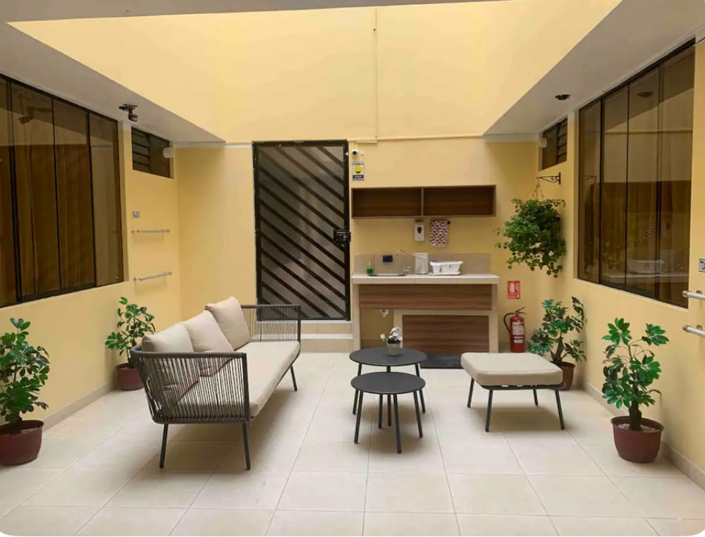 Mini departamento ubicado en el 4° piso, con 1 cocina totalmente equipada, 1 sala comedor, 2 habitaciones, 2 baños completos y ademas cuenta con un sofá cama Queen para 2 personas. La ubicación es ideal para aquellos que buscan explorar los atractivos turísticos de la zona, realicen viaje por trabajo o para personas que busquen relajarse. Estamos muy cerca a varios atractivos turísticos, agencias turísticas, restaurantes, cafeterías, bancos, farmacias y tiendas locales.