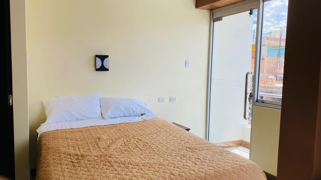 Habitacion Acogedora en Hotel Cajamarca Bonita, disfruta de una estancia cómoda y relajante en nuestra acogedora habitación, ideal para viajeros que buscan descansar después de explorar Cajamarca. Ubicado a solo 10 minutos de la Plaza de Armas caminando, tendrás acceso fácil a los principales puntos turísticos, restaurantes y tiendas, sin renunciar a la tranquilidad. La habitación cuenta con Baño privado, agua caliente, wi-fi, tv Nerflix y HBO, entre otros.