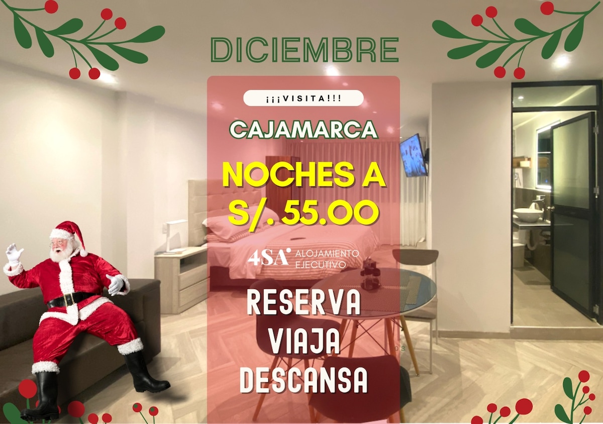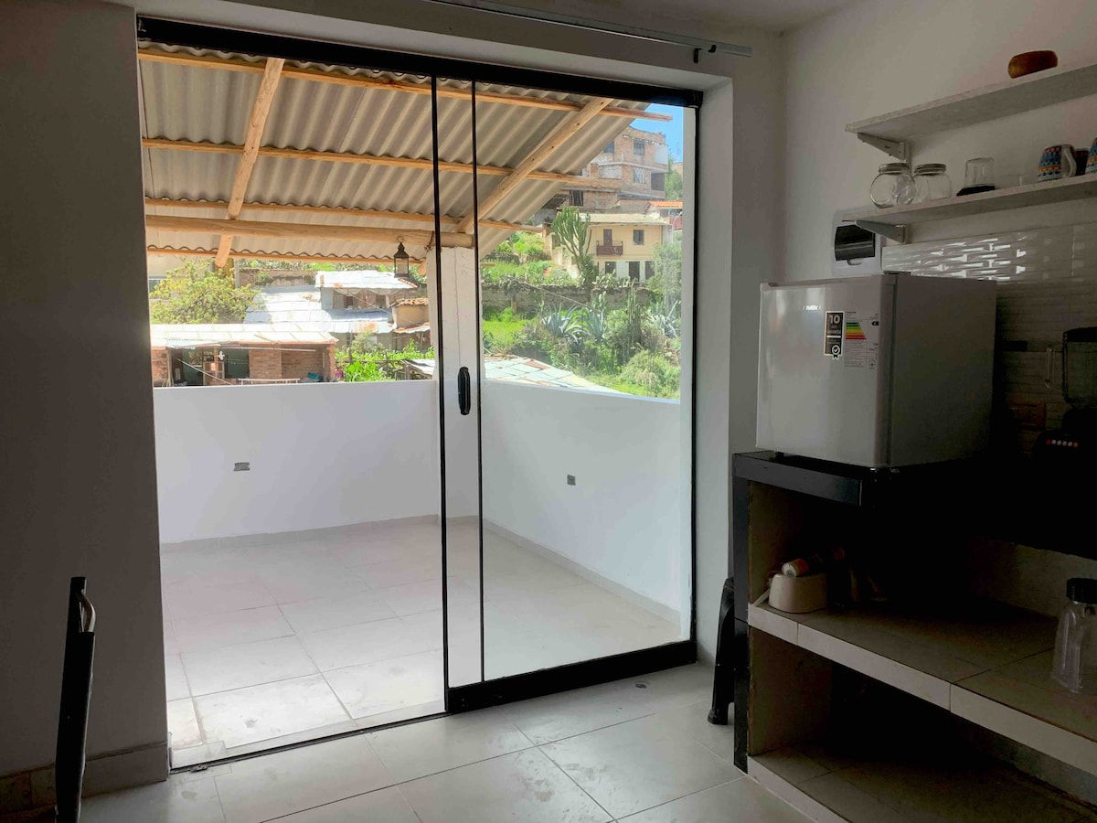 Minidepartamento rústico, muy acogedor, 3er piso, ubicado en la zona monumental de Cajamarca, JR. Unión 555, del barrio Cumbe Mayo. Consta de: - 01 habitación doble (camas de dos plazas) - 01 baño completo. - 01 sala - 01 cocina - 01 comedor Servicios: ✔️ Agua caliente ✔️ TV Smart ✔️ Internet wi-fi ✔️ Netflix, Amazonprime ✔️ Te damos todos los tips para que tú estancia sea la mejor.