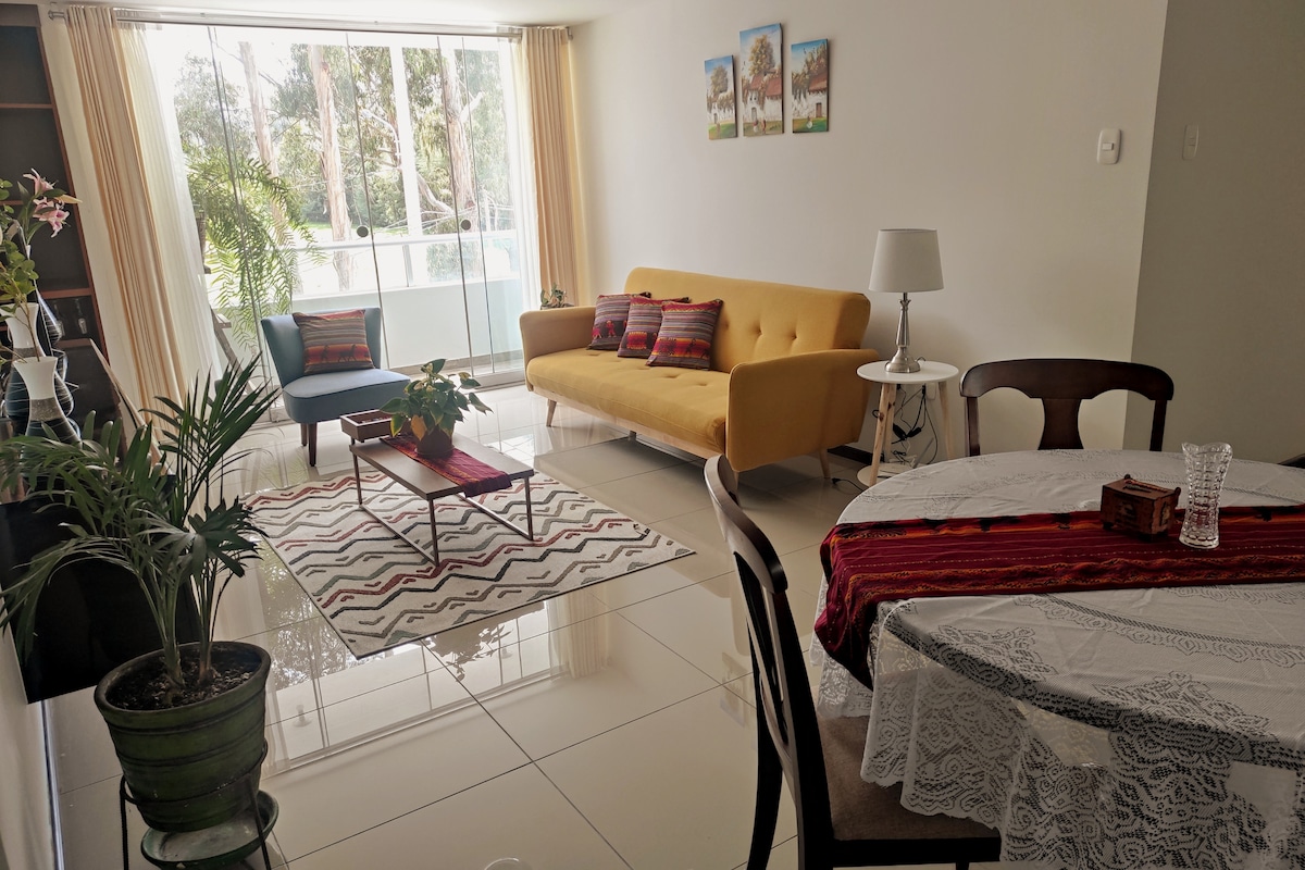 Cómodo y seguro departamento situado en el piso3 de nuestro EDIFICIO FAMILIAR, cerca de todo. En el Piso1 encontrarás una bodega con artículos de primera necesidad. Además con una ubicación estratégica: a 10 min de la Plaza de Armas y centros comerciales; a 5 min de la UNC, Terminal Terrestre y Alameda de los Incas; a 18 min del Aeropuerto. Alrededor encontrarás mercados locales, farmacias, restaurantes, etc. Mi familia y yo estamos prestos a su servicio para que disfrutes de tu estadía.