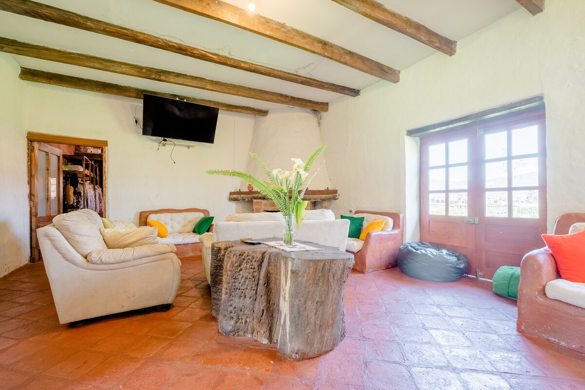Refúgiate en Kinti Yuraq, una cabaña de ensueño rodeada de colibríes, jardines y cielos despejados en Los Baños del Inca. Despierta con el canto de las aves y termina el día frente al fuego en tu chimenea privada. Relájate con agua caliente 24/7 y disfruta de TV 55" con Netflix, Max y más. A solo 5 min caminando de las aguas termales de los Baños del Inca. Ideal para familias o parejas que buscan paz, conexión con la naturaleza y una estadía inolvidable.
