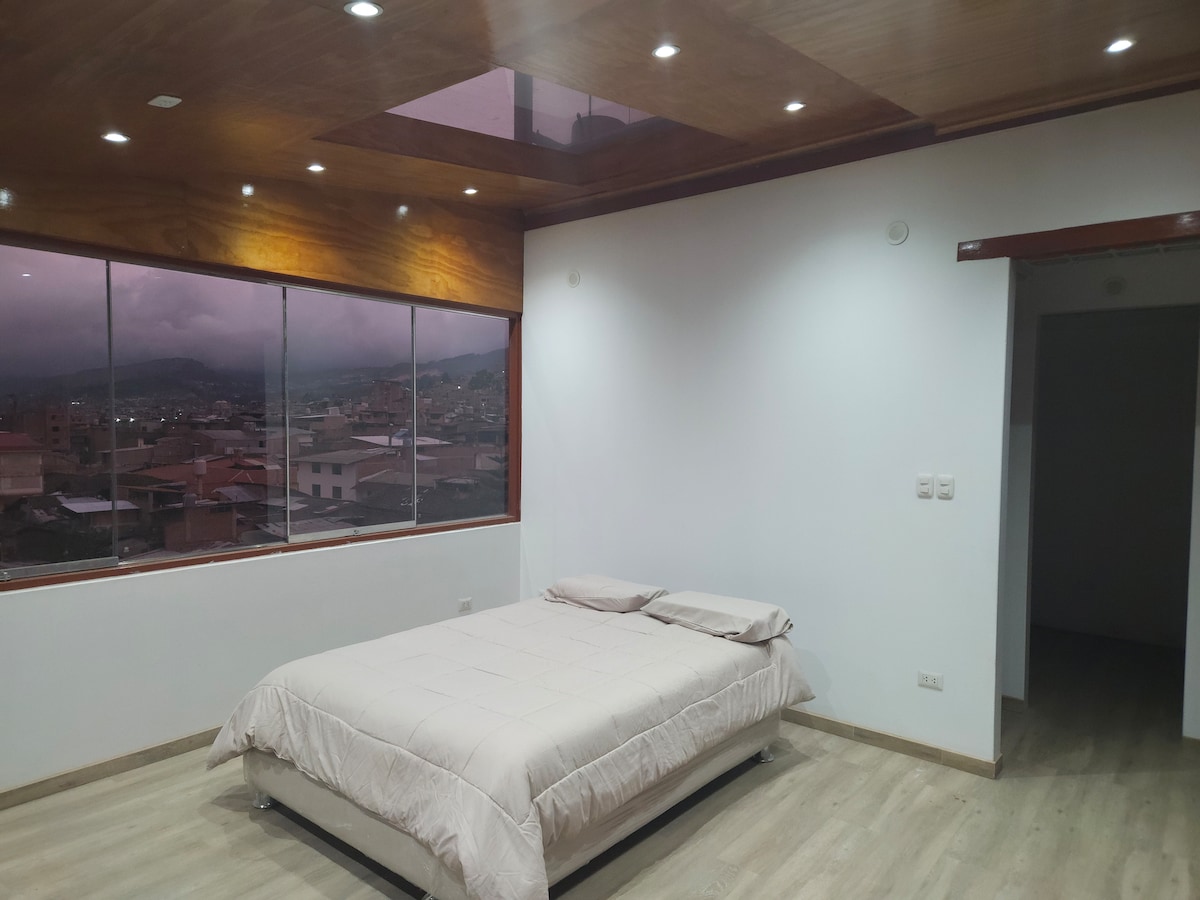 Cajamarca, Maravilla del Perú - Capital del Carnaval Peruano, estámos ubicados cerca de los principales centros comerciales, 1.8 km del aeropuerto, 2km Plaza de Armas, zona segura para descansar, discreta y privada. Equipamiento en todos sus ambientes: Hall, sala comedor, cocina, lavanderia, 2 baños, 3 cuartos y una oficina de trabajo.