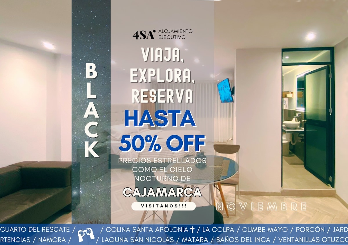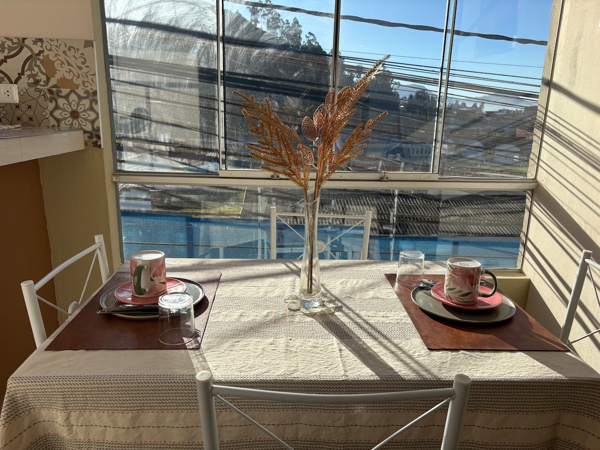 Minidepartamento rústico, muy acogedor, 3er piso, ubicado en la zona monumental de Cajamarca, JR. Unión 555, del barrio Cumbe Mayo. Consta de: - 01 habitación doble (camas de dos plazas) - 01 baño completo. - 01 sala - 01 cocina - 01 comedor Servicios: ✔️ Agua caliente ✔️ TV Smart ✔️ Internet wi-fi ✔️ Netflix, Amazonprime ✔️ Te damos todos los tips para que tú estancia sea la mejor.