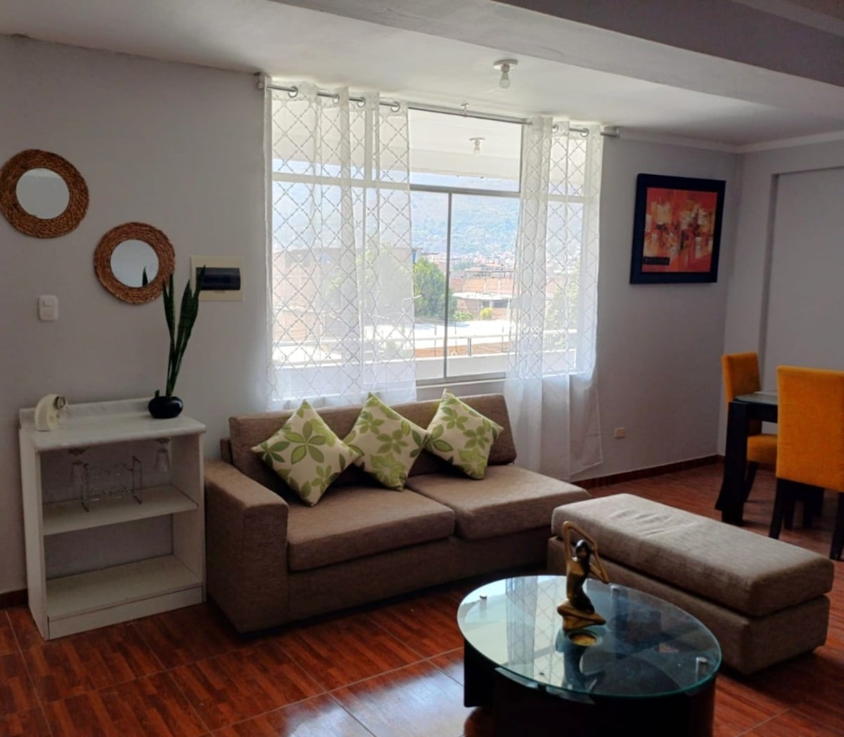 El departamento está a media cuadra de la plaza de armas de Cajamarca, muy iluminado y de estreno. Está ubicado en el tercer piso, tiene una terraza , también se puede acceder a la azotea en el cuarto piso desde donde hay una vista hermosa de la ciudad de Cajamarca. está muy cerca de todo, restaurants, bancos, tiendas de artesanía y todos los encantos del centro histórico de la ciudad de Cajamarca.
