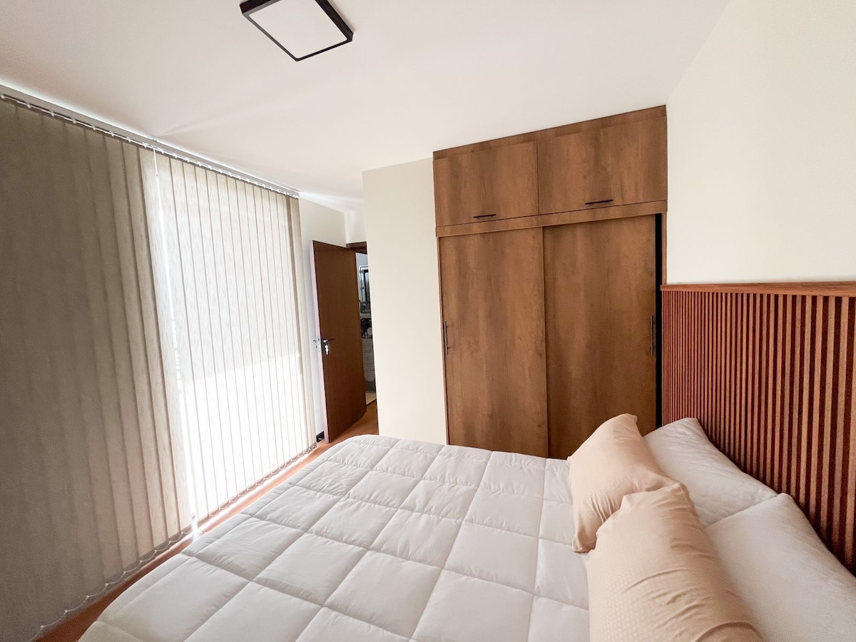 Disfruta de una estadía confortable en un hermoso, amplio y lujoso departamento, donde vivirás una experiencia inolvidable que te hará sentir como en casa. Ubicado junto al parque Excombatientes, lugar tranquilo y estratégico que te permite llegar a cualquier punto de la ciudad de forma inmediata. Cuenta con dos habitaciones (una en Suite) ambas con TV, amplia y equipada cocina, precioso living comedor con detalles que cautivan a la vista. Reserva ahora, Cochabamba te espera!