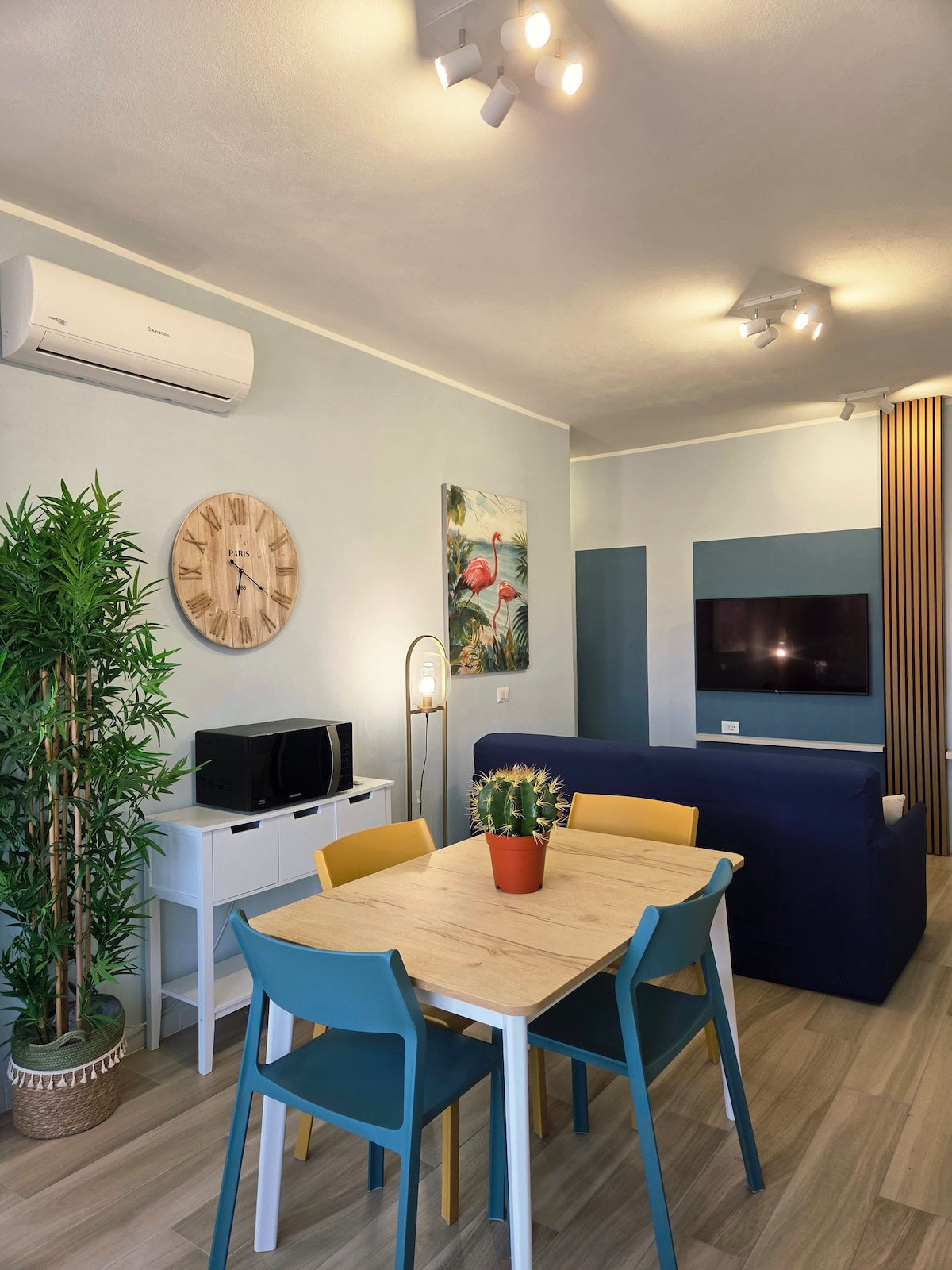 Grazioso appartamento a meno di 5 minuti a piedi dal centro storico completamente isolato da rumori. Vista mozzafiato su parte dell'Arcipelago maddalenino. La casa è dotata di aria condizionata, lavatrice, parcheggio privato coperto. L'appartamento si trova al secondo e ultimo piano di una piccola palazzina di sole 6 unità. L'ingresso da accesso alla zona soggiorno/cucina a vista con divano letto. Camera con terrazzino attrezzata con letto matrimoniale e letto a castello a scomparsa.