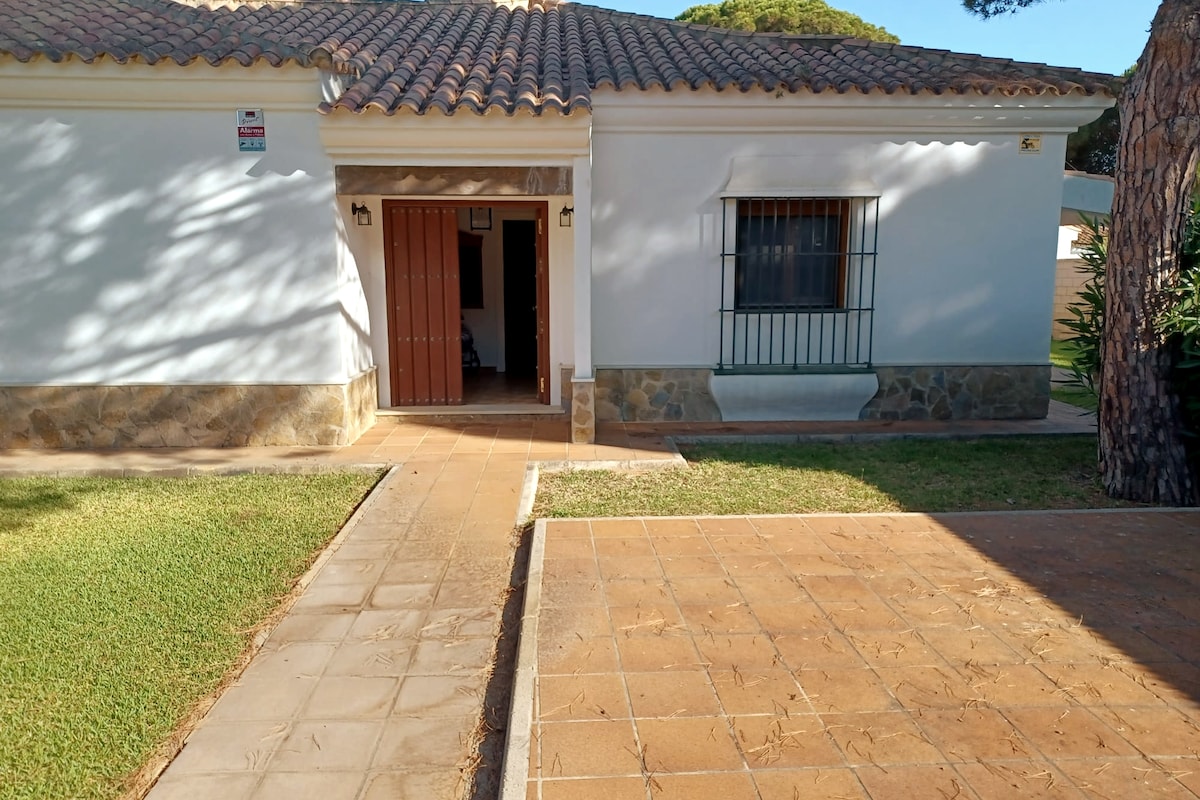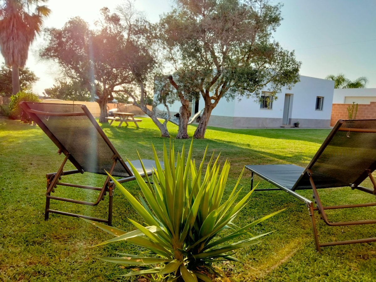 Casa de campo con encanto en parcela de 700 metros de jardín, con piscina de piedra natural, pérgola, ducha solar, situado a las puertas de un Pinar público de gran tamaño, cinco minutos en coche y unos 30 minutos andando de una extraordinaria playa por un camino forestal atravesando el pinar. Casa muy cómoda y acogedora, con una cuidada decoración. El entorno es ideal para pasear, tambien tiene muy cerca dos centro hípicos, la playa para hacer surf y varios campos de golf a menos a 5 minutos.