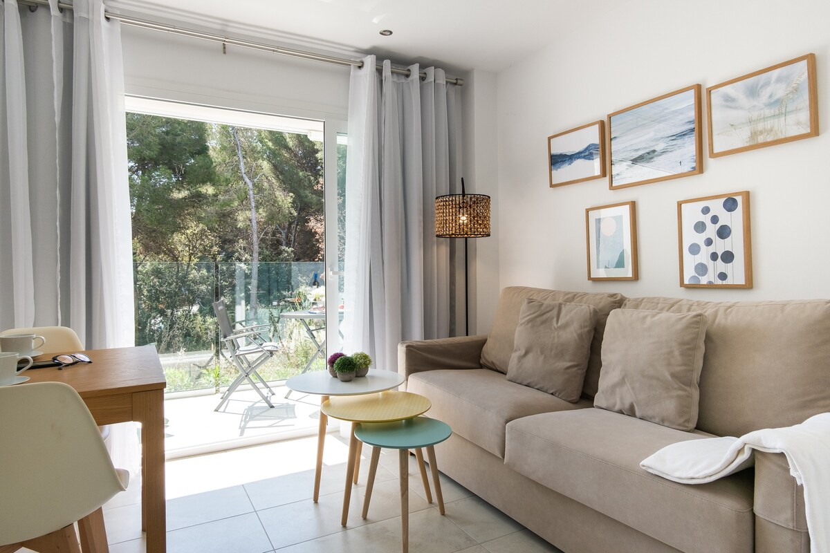 This beautiful apartment is located at just 50 meters from the beach. The property stands out by a spacious and bright dining room with air conditioning and heating system. It has a sofa bed and a work table with direct access to the outside terrace, furnished and covered. The bedroom has a double bed, a large wardrobe and a large window with access to the terrace. It has a complete bathroom with shower. The kitchen is fully furnished and equipped. SES TAPARERES A - ETVPL/15935