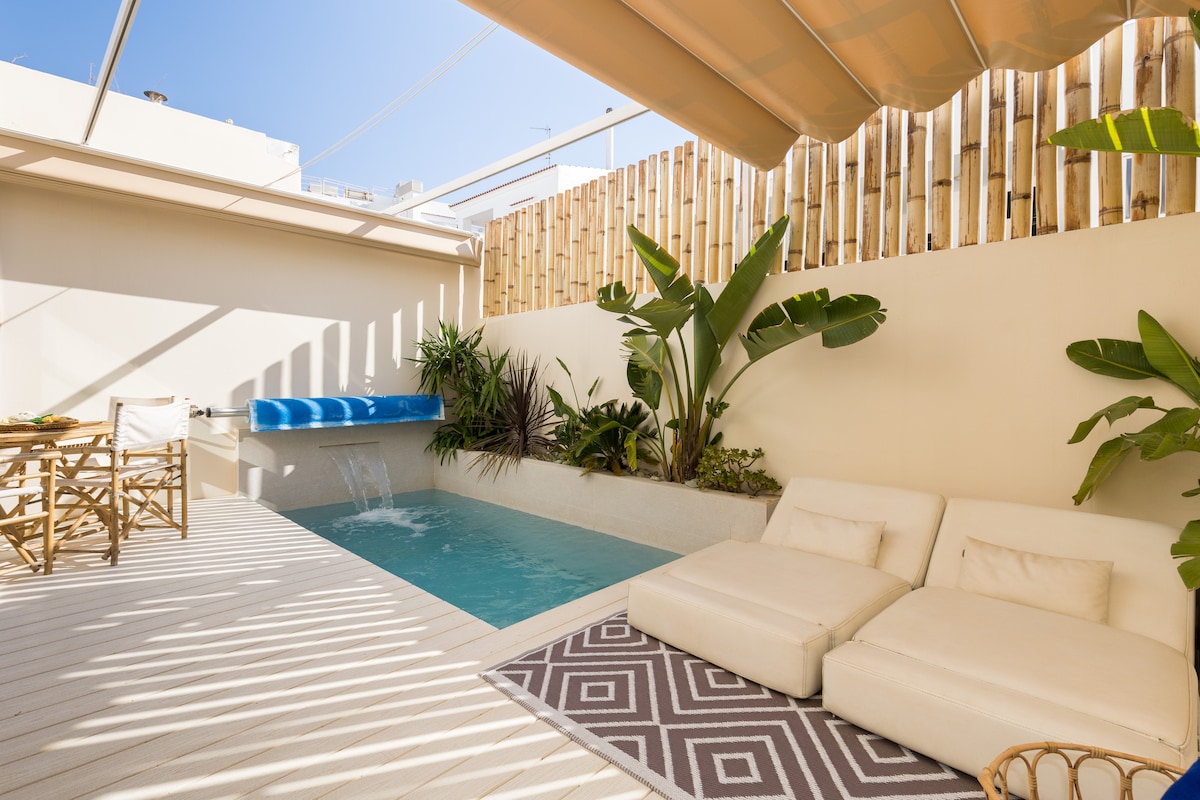 This stunning town house located in the center of the historic town of Cuidadela is of recent construction. The owner has thought of nothing else but pure modern luxury.The property is on two levels, with climatized private pool, chilout patio & private garage