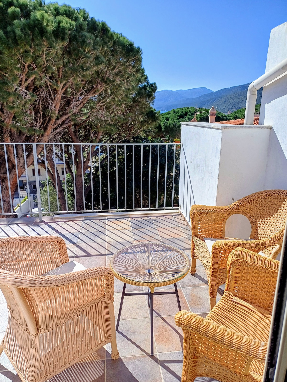 Sarò felice di ospitarvi nella mia graziosa casa! Per chi ama il mare 24 ore su 24...questo è il posto ideale! Fantastico per famiglie con bambini, il mare è sotto casa! Appartamento in villa trifamiliare con due camere, una matrimoniale e una con letto a castello, soggiorno con divano letto, cucina attrezzata e bagno con doccia. Completa il tutto un ampio patio attrezzato per mangiare godendo di una fantastica vista mare! Parcheggio all'interno della proprietà.