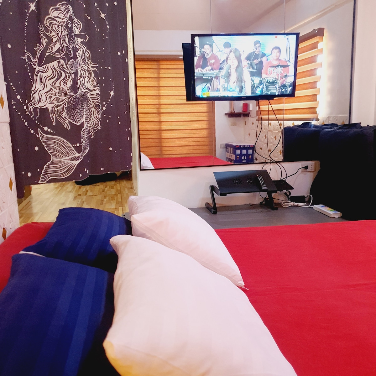 "Welcome to D'Rustic Haven-condotel! We're happy to assist you during your stay. If you need anything, please don't hesitate to reach out – my contact number is in the welcome guide. Our location offers easy access to bars, restaurants, malls, and more. Note that we don't provide free parking, but fee-based parking is available 24/7, managed by a third-party provider. Also, please be aware that the pool is under maintenance every Monday. Enjoy your stay!"