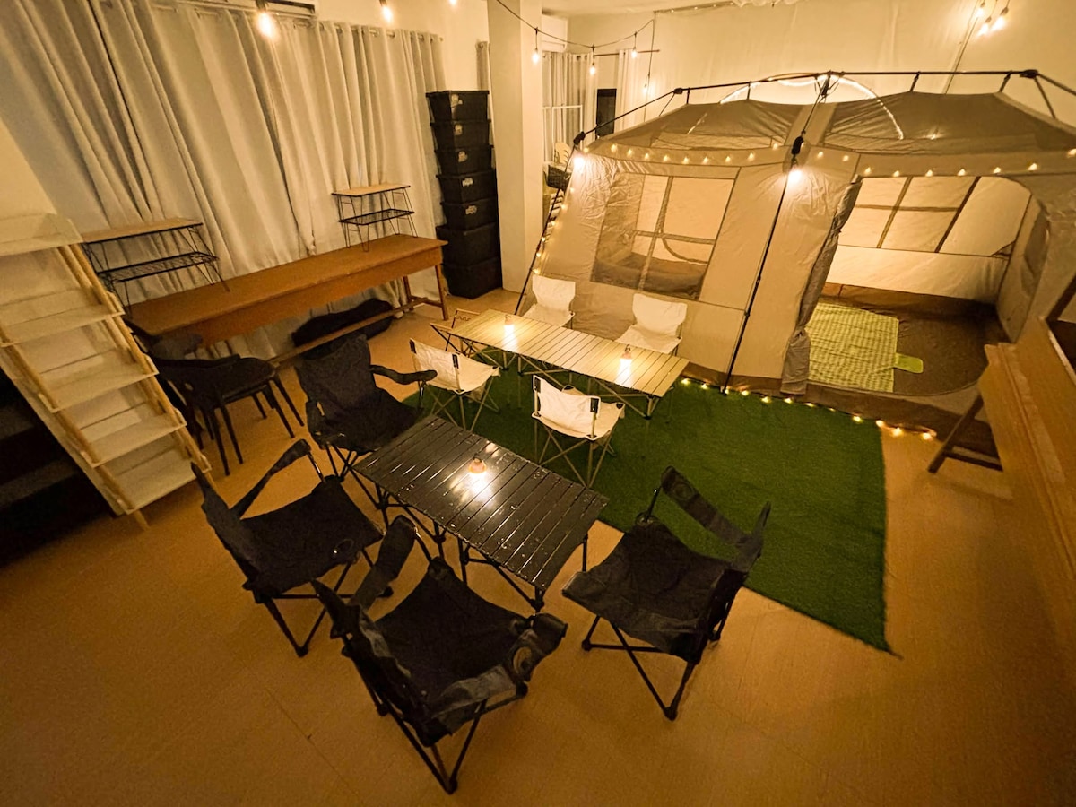 This memorable place is anything but ordinary. Indoor glamping experience in Quezon City. Rain proof indoor camping stay. Camp indoors, sleep cozy. Safe & Clean, perfect for kids and families. Warm lights & relaxing ambiance. Fully-airconditioned. Parking space. Staycations, birthday parties, sleepovers & small gatherings. Near barangay hall, Quezon City Hall, Philippine Heart Center, Matalino & Maginhawa food strips. Between main roads - Kalayaan Avenue/East Avenue.