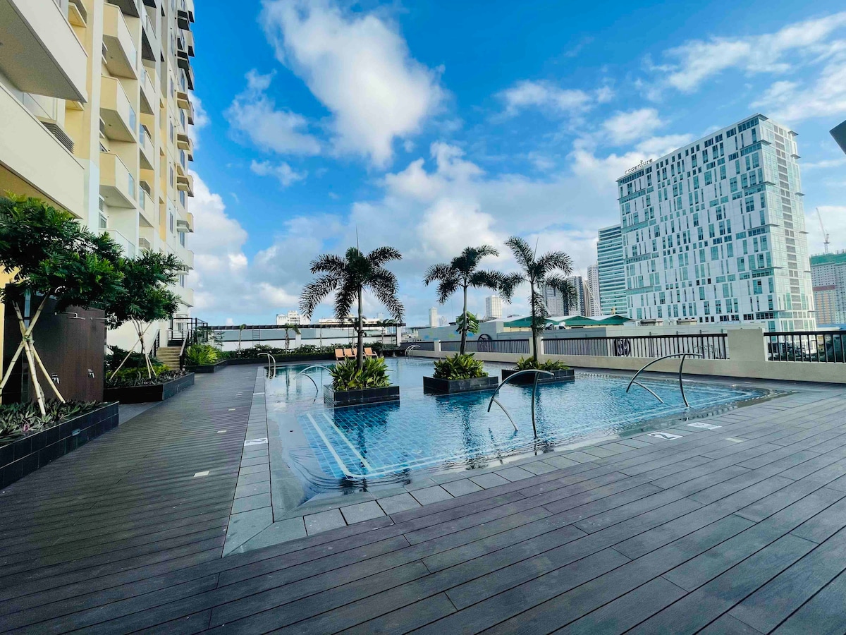 Bring the whole family to this great place with lots of room for fun. Experience a care free stay in this classy apartment that's centrally located in Uptown BGC! Right in front of the new Mitsukoshi Mall and a few steps away from Uptowm Mall and Uptown Parade. Stroll through the vibrant streets of BGC or have a break in one of the many cafe's. Whether the family wants to relax, shop, stroll, or food trip, the BGC experience starts the moment you walk into our place! Come and feel the vibe!