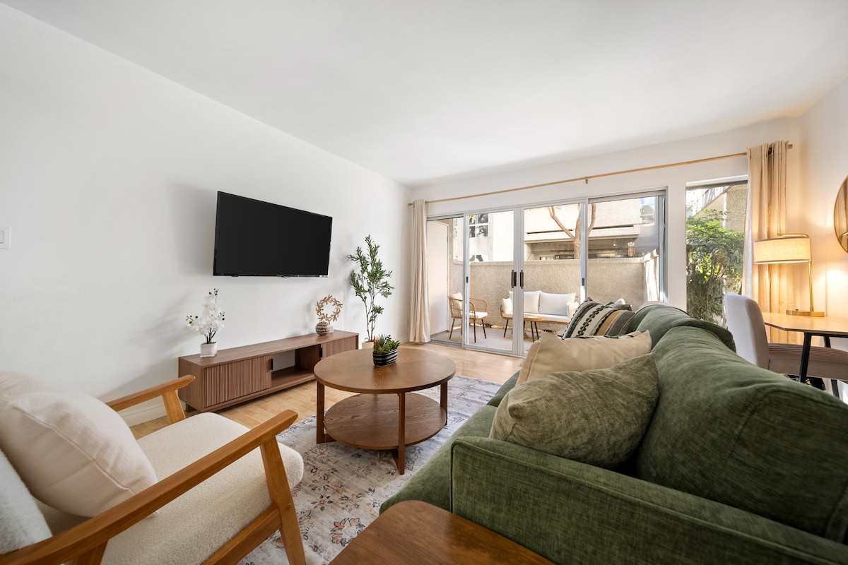 Midcentury modern 2bed/2bath stilt home with spectacular views above Sunset Strip (2 blocks up from Hollywood + Fairfax). Only blocks from the action, but very private and quiet. Recent renovations from roof to foundation, heat/AC system, 1 Giga/sec wifi, wired in + out with 11 speakers, movie projector + two 4k TVs (free Netflix, HBOMax and AppleTV+), 2-car parking with level 2 electric charger. Please note: No social gatherings or late, loud nights. Interior = 1015 sq ft. Deck = 300 sq ft.
