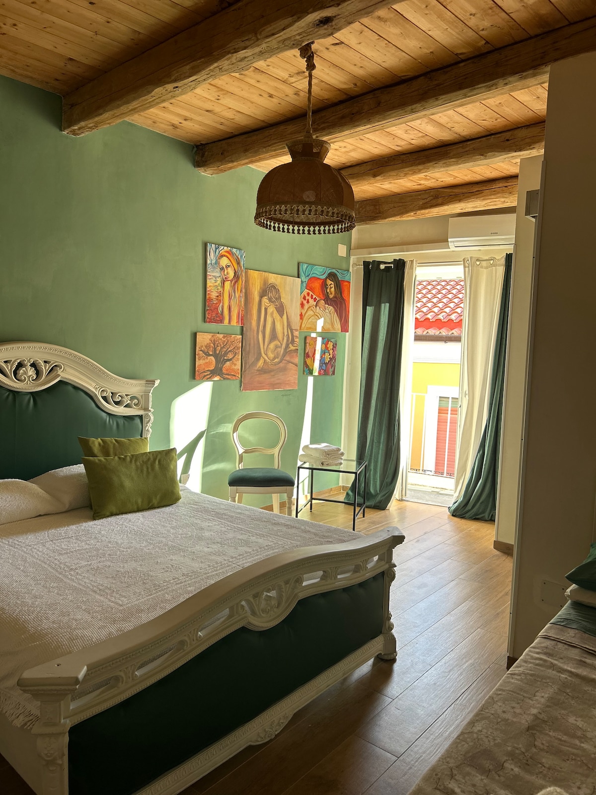 La camera con balcone si affaccia sull'antico Borgo di Bova , ed ha come vista il Canale di Sicilia e l'Etna, a volte fumante e innevato. Ha il bagno completo in camera (doccia). La camera ha: aria condizionata/riscaldamento, minifrigor, un armadio a giorno, un tavolino ribaltabile e due sedie . I comodini dono inseriti nella testata del letto, è una camera piccola ma accogliente . Non è possibile aggiungere letti o culle. il letto può essere matrimoniale, oppure dividersi in due letti singoli.