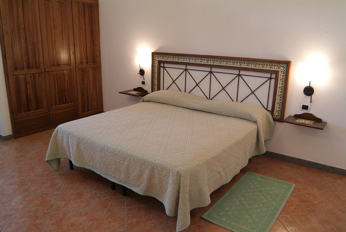 Villa in campagna. Dista 1.3 km dal centro abitato e dal mare. Composta da 5 stanze da letto, 4 bagni, lavanderia, cucina, zona pranzo, salone, terrazzi, balcone, ampi patii uno ad Est e uno ad Ovest, giardino, pergolato per pranzo all’aperto. Wifi disponibile. È consigliata l'automobile.