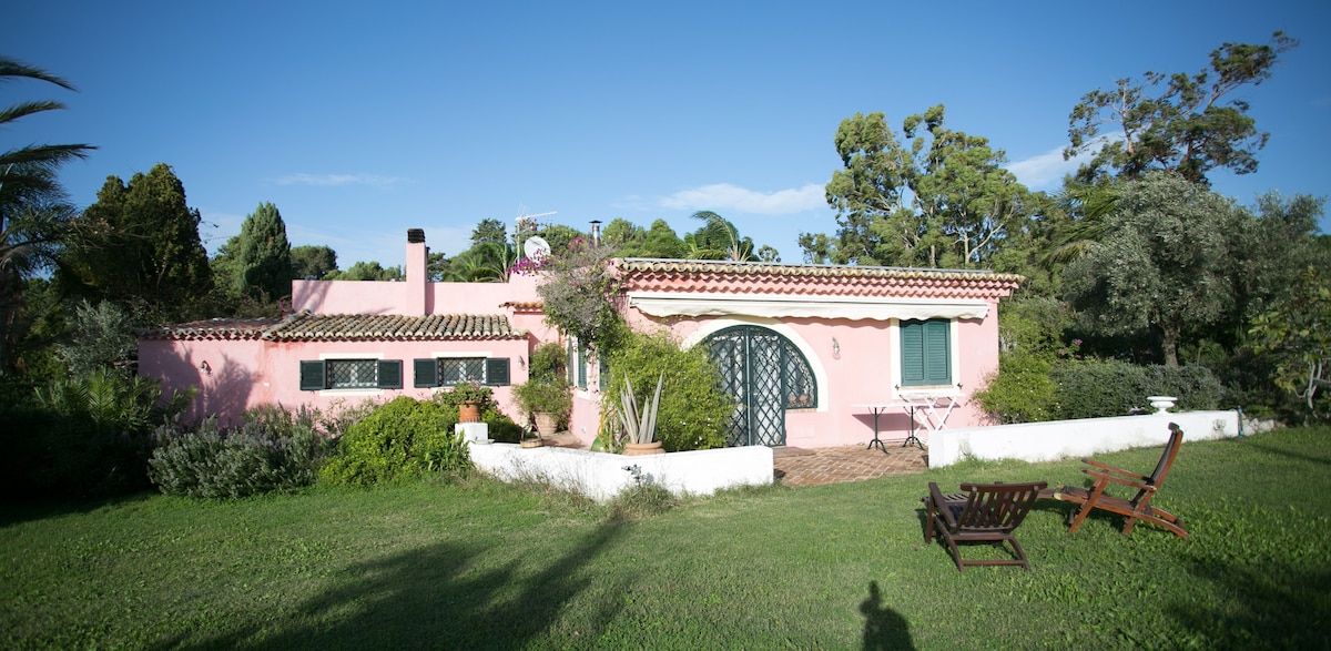 All'interno di proprietà privata, villa con giardino e vista mare, struttura secondaria di due ampie stanze e confortevole bagno con doccia. No cucina. Piccolo frigo. Accesso giardino e due posti auto nella proprietà. A pochi minuti dal mare.