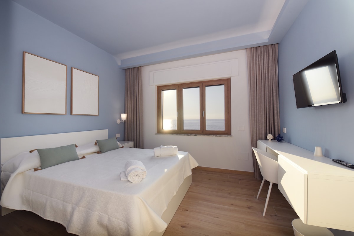 In the heart of beautiful Pizzo, just one minute’s walk from the sea, stands La Marina Luxury, an apartment on the fifth floor with an elevator, recently renovated and furnished with taste and elegance. The apartment features three bright and spacious bedrooms, all offering a wonderful sea view. The living area includes a cozy lounge, a fully equipped kitchen, and a large panoramic balcony — the perfect place to enjoy breakfast, lunch, dinner, relax, or admire the sunset.