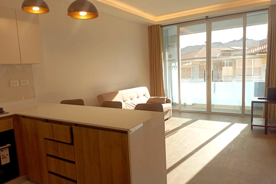 Disfruta de este moderno e impecable departamento de 1 dormitorio ubicado en la zona de San Miguel. Decoración minimalista, cómoda cama, cocina equipada y limpieza asegurada. Accesos seguros con código digital y tarjeta de ingreso. Luminoso, acogedor e impecable, emplazado en el piso 6 y ubicado estratégicamente cerca de restaurantes, supermercado, tiendas y transporte. Ideal para parejas o viajeros que buscan comodidad, seguridad y estilo en cada detalle.