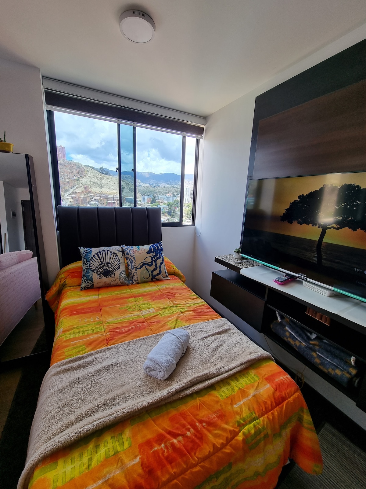 Welcome to our cozy and modern studio apartment, in the heart of the city! 3 blocks from the cable car, close to several restaurants, with all the necessary amenities for an UNFORGETTABLE stay. Double bed, 23rd floor of a new building with a spectacular panoramic view of the city center, totally QUIET and SILENT, SUNNY atmosphere all afternoon, also has Smart TV, refrigerator, heating, washing machine, magistv, and entertainment.