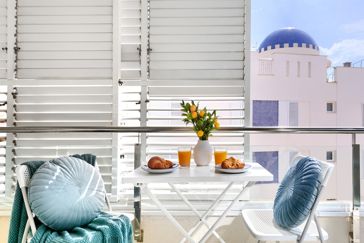 Cute ocean-front apartment with 1 double and 2 single bedrooms, which can be converted into doubles by extending the beds, so the apartment can host up to six people. There's also a portable baby travel bed if you are travelling with a baby or a toddler. All bedrooms are facing the interior so they are very quiet. For a relaxed beach holiday, the location doesn’t get any better than this. You step out of the house and the beach is literally right there.
