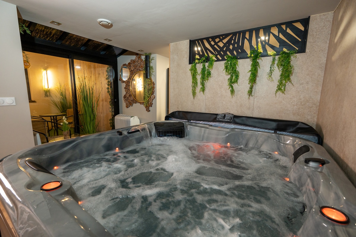 Notre suite vous offre tout le confort nécessaire avec une balneo, sauna et douche italienne. Un lit king size très confortable pour vous reposer, et un joli coin salon pour chiller. Une cuisine est à disposition ou une formule repas est proposée. Vous avez également une tv connectée et le wi-fi. L'atelier du Chill met à disposition le linge de toilette et de lit. Le petit déjeuner est inclus. Vin, champagne ou cocktail inclus sous conditions. interdit -18ans/Uniquement pour 2 personnes !