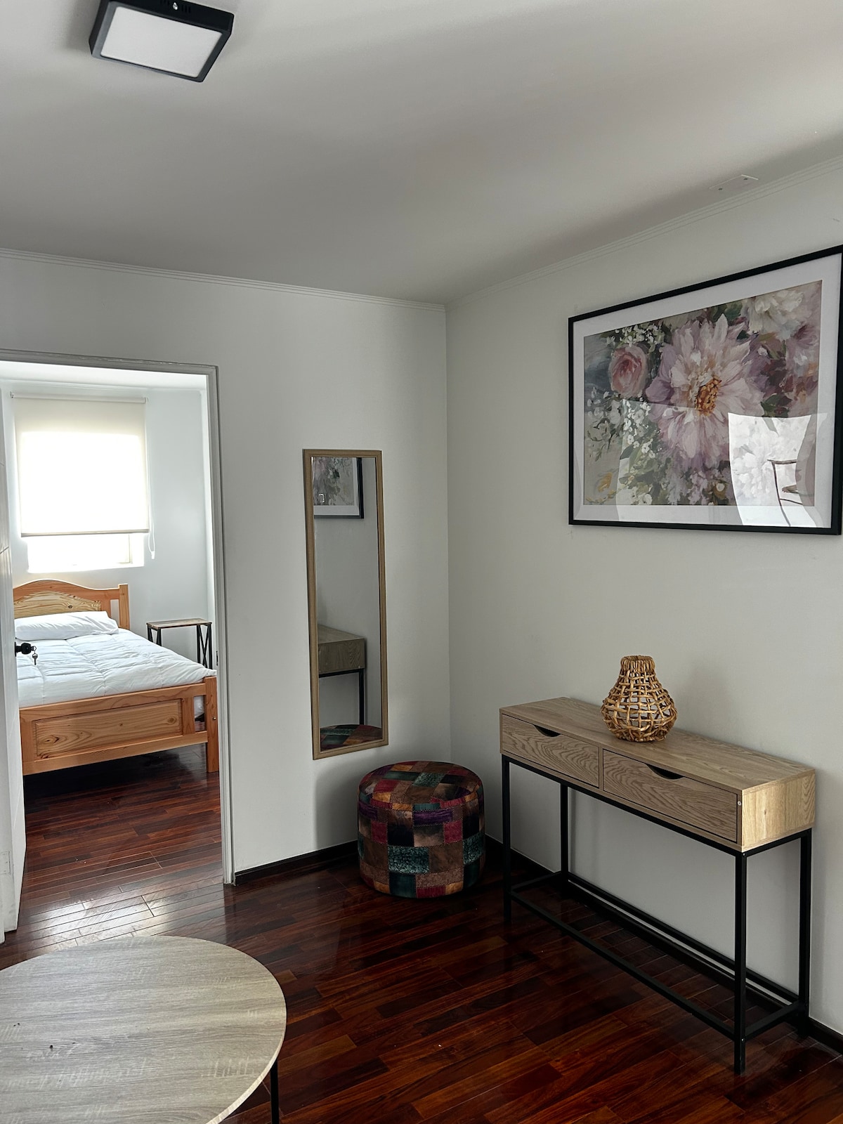 Disfruta de la sencillez de este alojamiento tranquilo y céntrico. Cuenta con todo lo necesario para hacer de tu estadía la mas agradable, tiene área de trabajo. Cuenta con todo lo necesario a sus alrededores, mall a 5 minutos, Banco, Farmacias, Tiendas de Ropa y demas. Condominio seguro, recepción 24 hrs, estacionamiento privado en Subterráneo