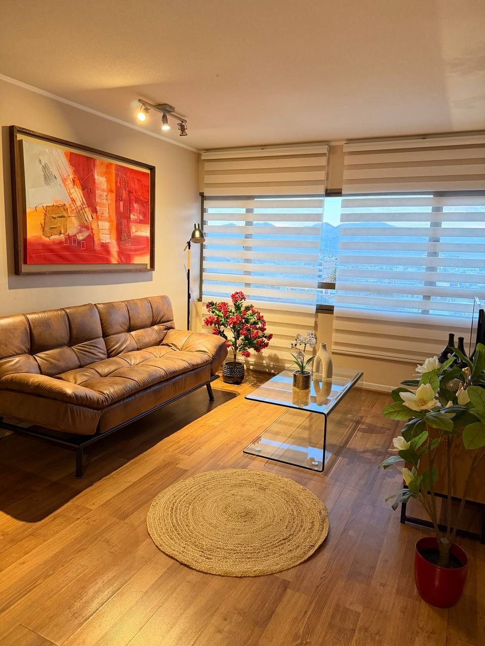 Disfruta de una estadía en pleno centro de Calama, con una vista espectacular de la ciudad. Este moderno departamento en el exclusivo Edificio Espacio Parque te ofrece confort, seguridad y ubicación inmejorable. Relájate en un entorno tranquilo con estacionamiento privado, hermoso parque y comercios a pasos de tu puerta. ¡Reserva ahora y vive la mejor experiencia en Calama! Espacios comunes: Sauna, jacuzzi, sala multiuso, gimnasio y quincho (pueden tener costo adicional y no estar disponibles)