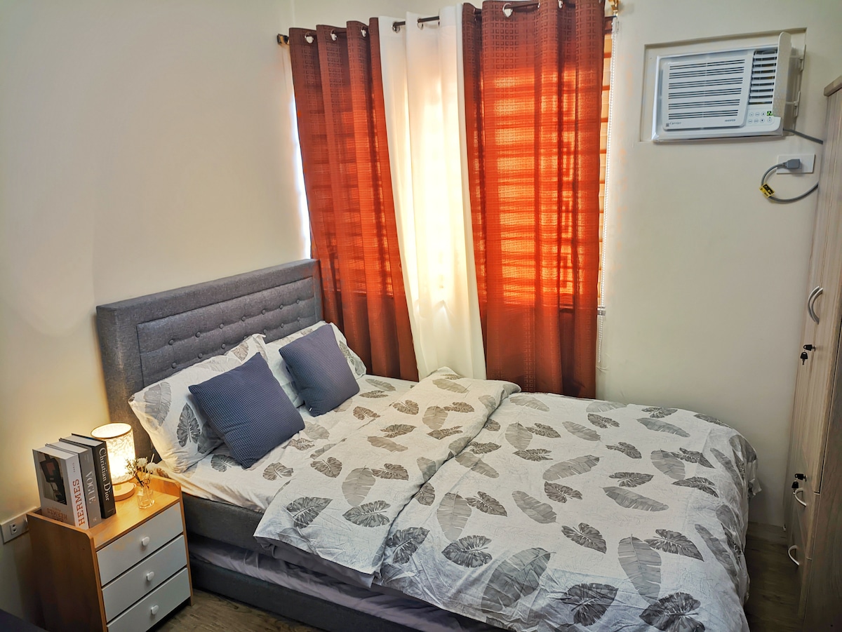 Stay in the center of the action in this one-of-a-kind place. Near to everything that you need. A very nice place to stay, hangout or just chill. * Aircondition * 65-inch TV * Soundbar Speakers w/ Subwoofer * WiFi * Air Purifier * Bed Size Double 54x75 * Pull-out Bed size twin KITCHEN * LG Refrigerator 7cuft. * Induction Cooker * Microwave Oven * Electric Kettle Pots & Pans * Kitchenwares & Utensils * Dinnerware BATHROOM * Single Point Water Heater * Fully Automatic Washing Machine