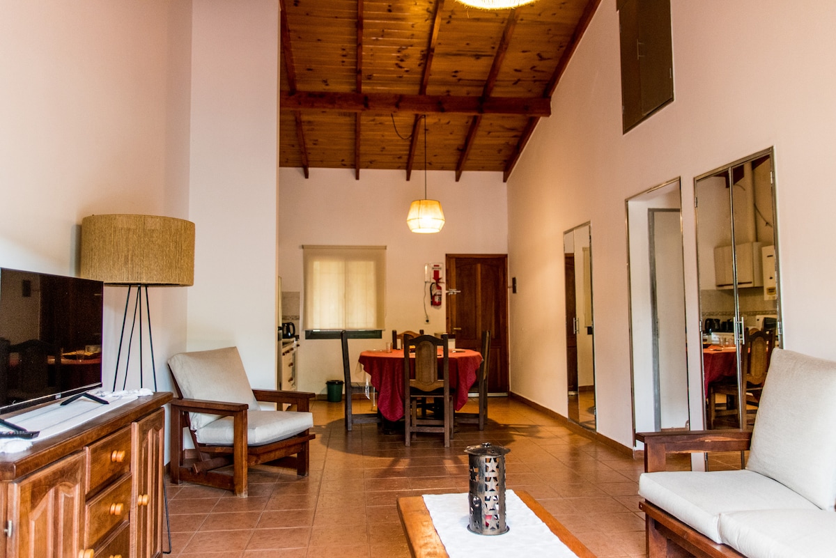 Monoambiente para 2 personas ubicado a 5 minutos del centro, en un entorno natural privilegiado, con acceso a una de las playas céntricas mas lindas del río Santa Rosa y rodeado de un gran parque arbolado.