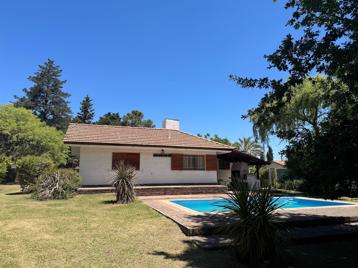 Chalet (200 mtrs) sobre río Santa Rosa. Sobre un acre parquizado con añejos pinos, robles, y variedad de otros muchos autóctonos; con una imponente visual de centenarios álamos carolinos sobre un rumoroso arroyo lindero. La casa: dos dormitorios, baño,amplia cocina, confortable living, pequeña biblioteca, juegos de mesa, y un comedor para 6/7 personas, con vistas al parque. Garaje para dos autos, gran galería en L con asador, desde donde se observa el río y su murmullo. Rampas p/discapacitado.