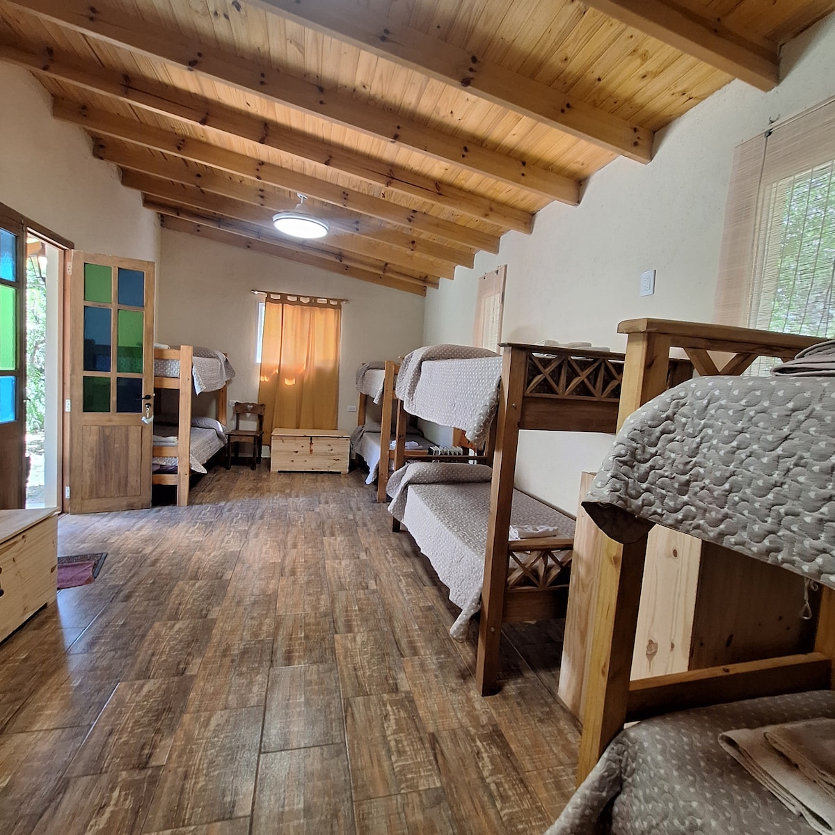 Relajate en este alojamiento único y tranquilo. Casa de campo autosustentable ubicada en un predio de 25 has. exclusivas para vivir absoluta privacidad. En un marco de pura naturaleza serrana con vistas increíbles, bosques variados, arroyos y acceso privado al Rio del Medio. Entorno ideal para desconectarse de la rutina diaria. Se abastece con energía solar. Tiene internet.
