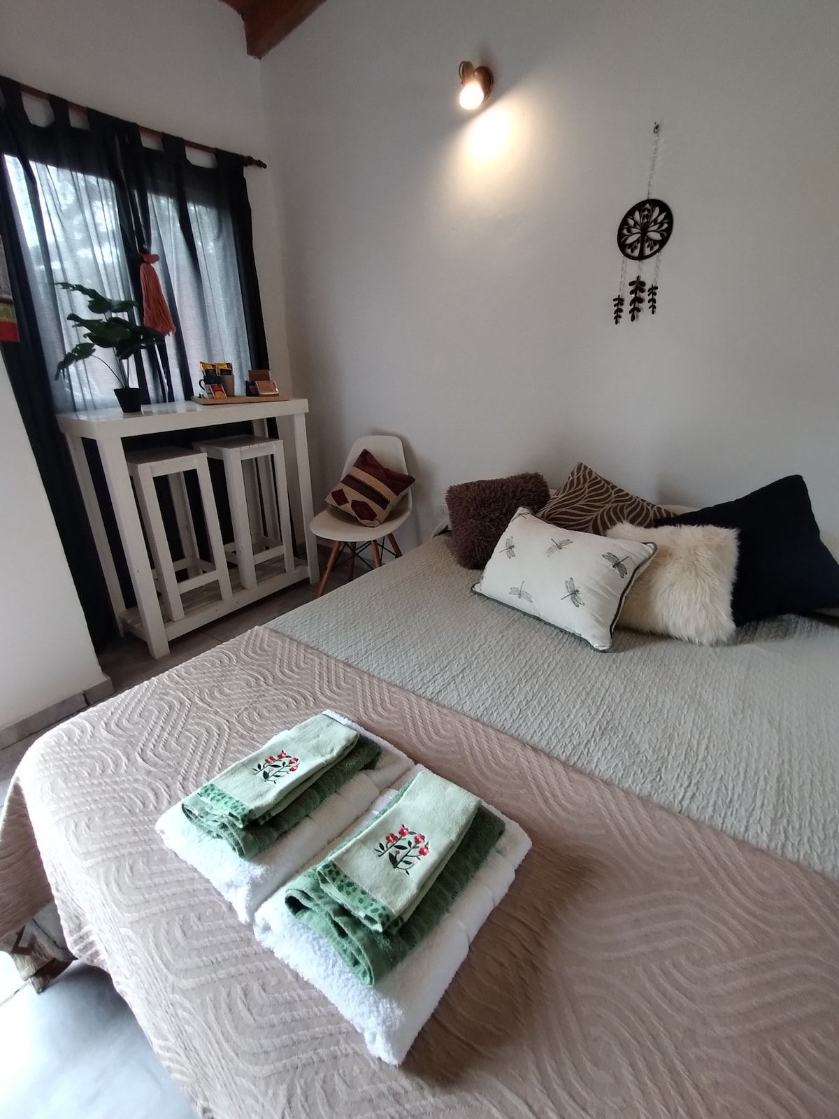 Loft estilo colonial con cama King para dos personas, con baño privado, tv, wifi, microondas, pava eléctrica y salamandra. No tiene aire acondicionado. Excelente ubicación, sobre ruta 23, en el ingreso a Amboy, con vista al Champaqui y a 1 minuto del centro histórico. Paseos: -Capilla San José, del año 1885 -Museo histórico Velez Sarsfield -Pulperias y almacenes de campo -Senderismo, ciclismo -Arroyo Amboy, Rio Grande, Lago Cerro Pelado -Reservas Naturales