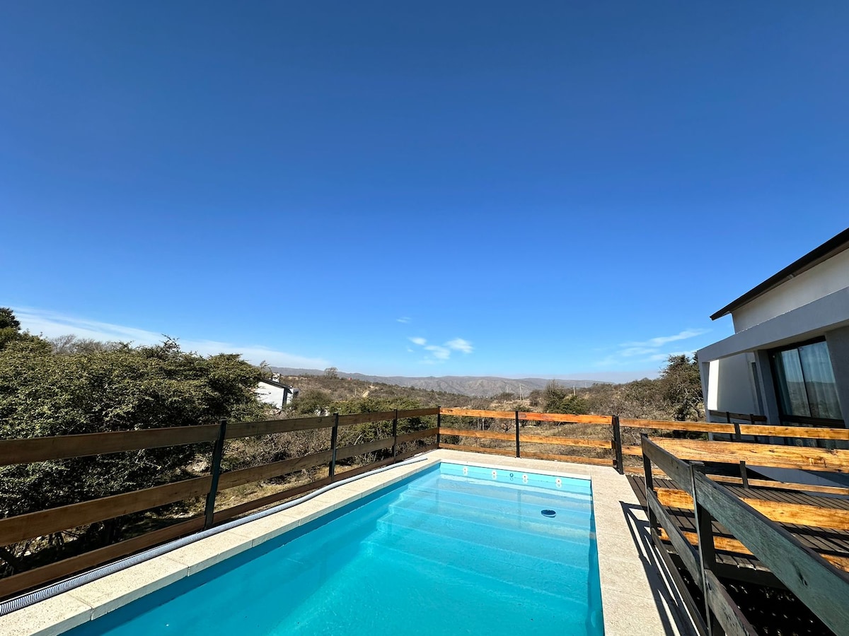 Hermosa casa a estrenar totalmente equipada para disfrutar de la naturaleza y el rio de cordoba. Amplios ambientes para cocinar y compartir en familia y con amigos y un sector de galería y piscina enorme con vistas inigualables al champaqui No incluye ropa blanca. Consultar en caso lo requieren