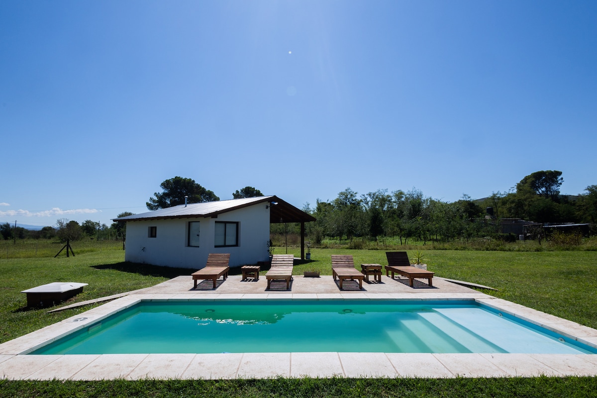 Casa de campo equipada para hasta 5 personas en Solar de los Molinos, barrio ubicado a 10 min de Villa Gral. Belgrano. Naturaleza, bajada al lago, senderos y silencio. Ideal para descansar o trabajar remoto. 2 habitaciones (una en suite), 2 baños, WiFi, cocina completa, galería con asador, piscina, cochera techada. Te recibimos con calidez y una guía personalizada con los mejores lugares de la región. Cada detalle está pensado para que vivas una experiencia cómoda, serena y auténtica.