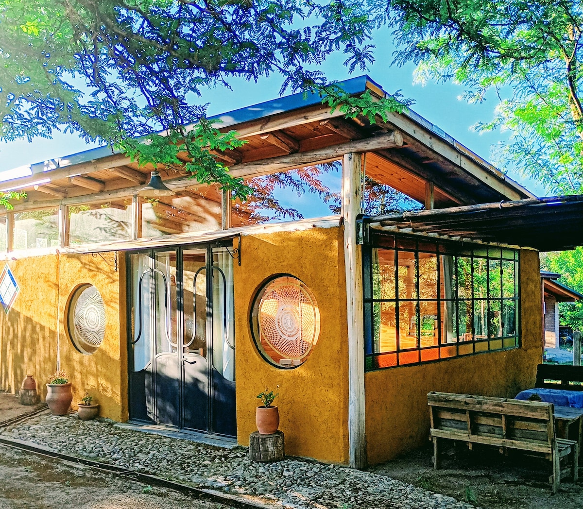 Absoluta paz y tranquilidad en esta casa sobre calle sin salida. Silencio garantizado. La casa está rodeada de verde, arroyos, pájaros y arte. El arte plástico presente en muchas obras, y también las letras. Nuestros cuadros, nuestros libros y nuestra música a vuestra disposición para crear una estadía inolvidable. Al mismo tiempo existen dos espacios de trabajo, con escritorios y excelente conectividad a través de fibra óptica. Al aire libre, la pileta, asador y horno de pan.