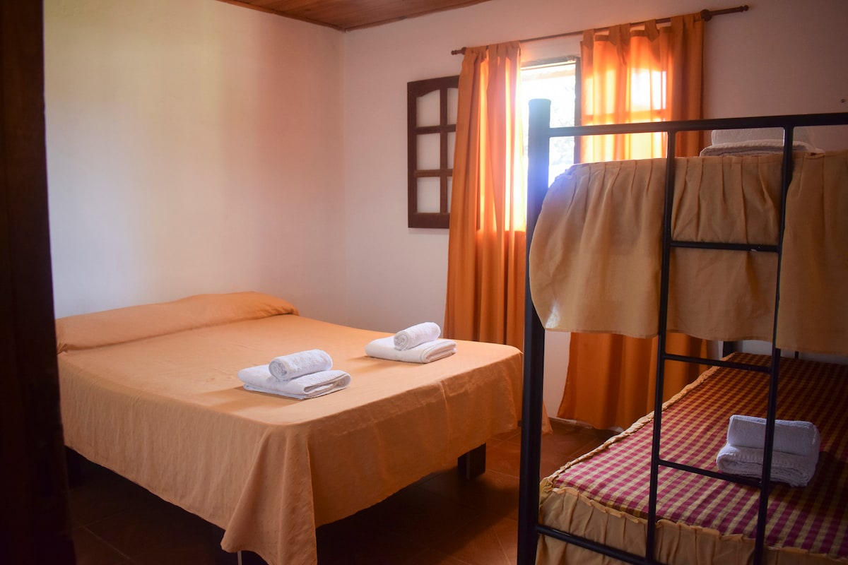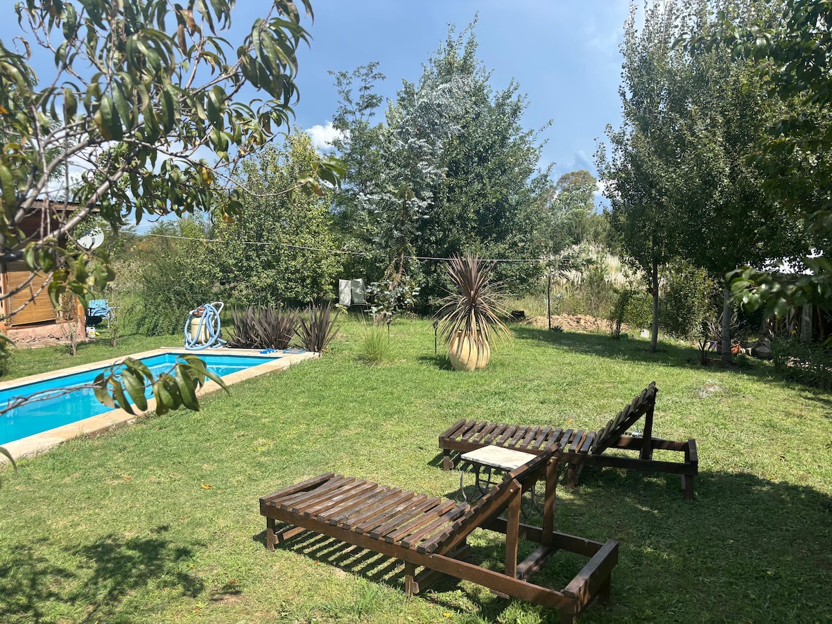 Sentite como en tu propia casa, en contacto con la naturaleza. Lugar íntimo y acogedor, con 1 hectarea de parque y costa de arroyo. Nosotros vivimos en una unidad independiente, dentro de la misma propiedad., el espacio del huésped, es privado. Tan solo a 500 metros de balneario con playas de arena..Hacete una pausa para vivir la experiencia de escuchar el sonido de las aves y las vistas a las sierras.