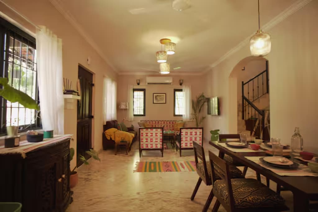Coconut Jam is a cozy 1BHK apartment. It’s not a resort room it’s a warm, thoughtfully designed home where you can curl up for a movie night, brew coffee in your pajamas, or set up your laptop and enjoy working from home. Google Maps may place the listing on the beach road, but the apartment is located within the Maapshi Resort compound, roughly a 7 minute away drive/ride to the main beach road.