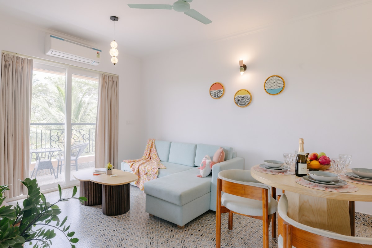 ✨🌴 Welcome Home! at Apt Tranquil - 615 ! 🏖️🌊 Claim your peace & take a holiday at our intimate & stylish 1-bedroom retreat. ✨ What You’ll Love ✨ ✅ Located in Arpora - Anjuna Road (Acron Sea Winds) 📍 900 m – Baga Beach 📍 3 km – Anjuna Beach 📍 4 km – Vagator Beach ✅ Apt size : 810.74Sq.Ft ✅ Bluetooth Speakers & Board Games ✅ Romantic Wrap Around Balcony ✅ 1 Dedicated Parking ✅ 24 x 7 Security ✅ Complimentary housekeeping ✅ 2 Olympic Size Pools & 1 Baby Pool / Gym / Sauna