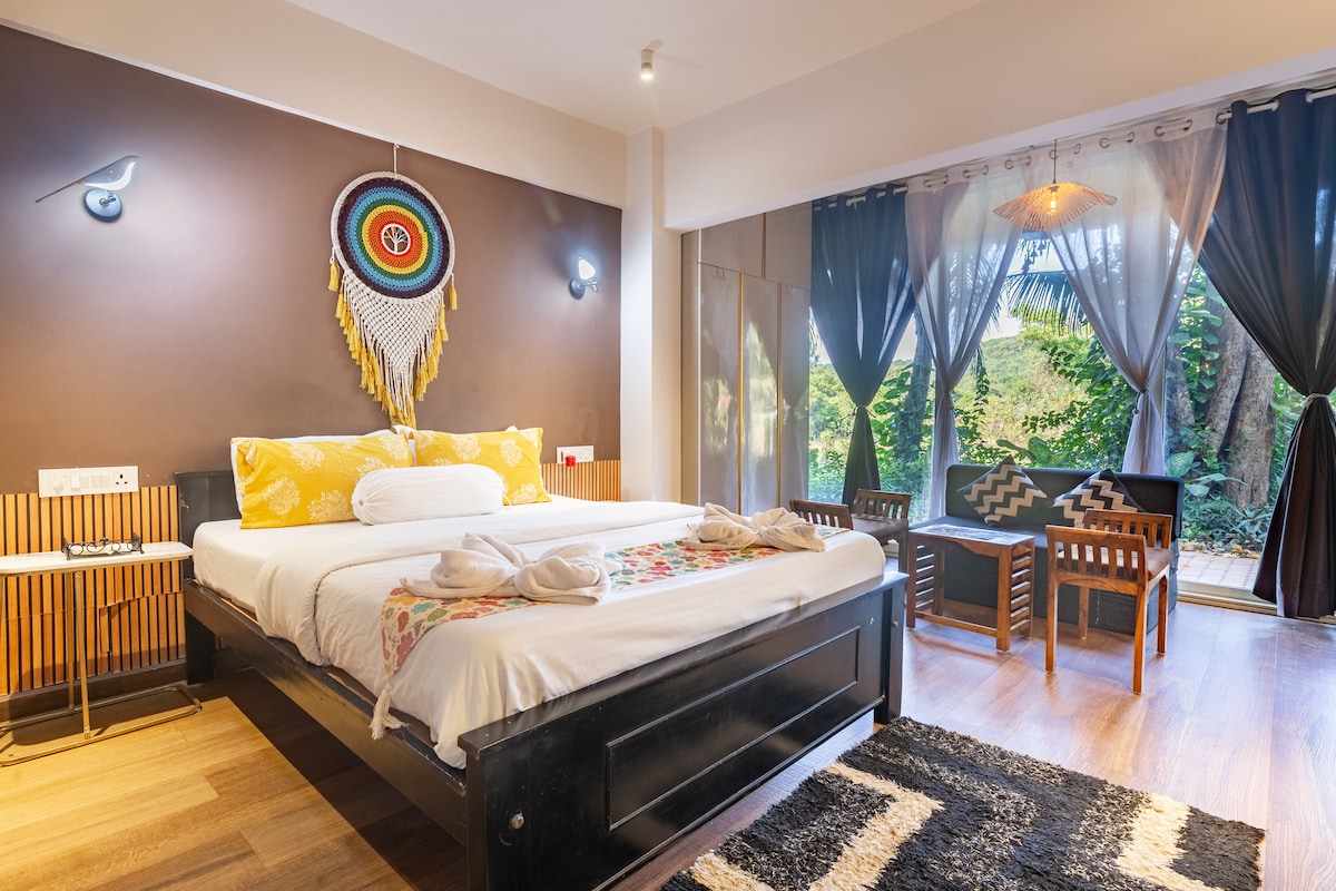 Welcome to Bohobnb, where comfort meets bohemian charm! Nestled in heart of Siolim, our 1-bedroom duplex apartment offers a unique stay with an attic and a private terrace. Surrounded by lush greenery, this home provides beautiful views that ensure peace and tranquility in a gated community with all the modern amenities including elevator, swimming pool, High-speed WiFi. Whether you're relaxing in the attic or soaking up the sun on the private terrace, every moment promises peace and comfort.