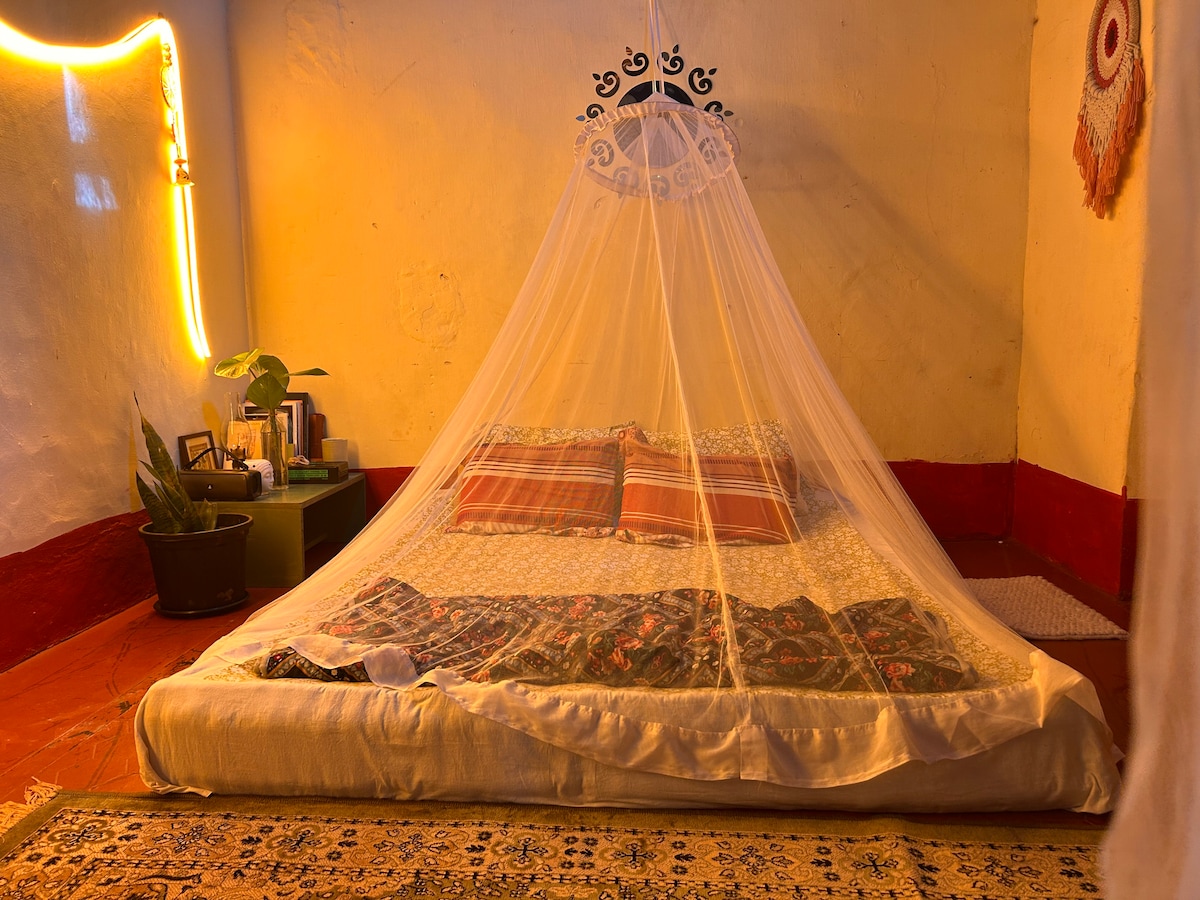 🌞The YelloMello House: where Sun & Beach meet serenity. This cozy, pet-friendly 1BHK offers an AC bedroom, a comfy living den, high-speed Wi-Fi with mini UPS backup, & a fully equipped kitchen in Upper Mandrem Village, North Goa, just 3 km from the beach. Wake up to birdsongs & sunshine, read our books📚, head to the sea 🏖️ for golden hour reflections, cook 🍳or enjoy live gigs & cafés. For creation or simply pausing, we invite you to unwind at your own pace. No power backup for the house.🏡
