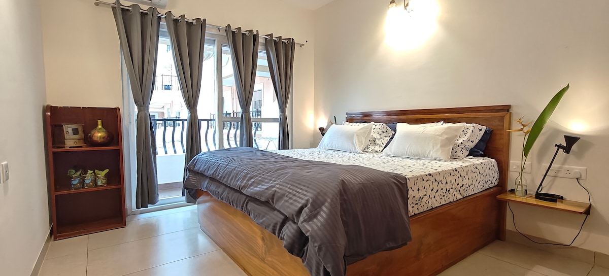 JenVin Luxury Homes welcomes you to our stylish, modern fully furnished two-bedroom apt approx 1500 sq.ft, Baga North Goa. Featuring spacious apartment with huge balconies overlooking the garden this peaceful abode is tucked away near all the vibrant hotspots, yet a hidden gem offering peace and comfort. Located less than 1 km from Baga Beach, and just a 10–20 minute drive to popular beaches like Anjuna, Vagator, Calangute, and Candolim, offering the ideal mix of Goa’s vibrancy and relaxation.