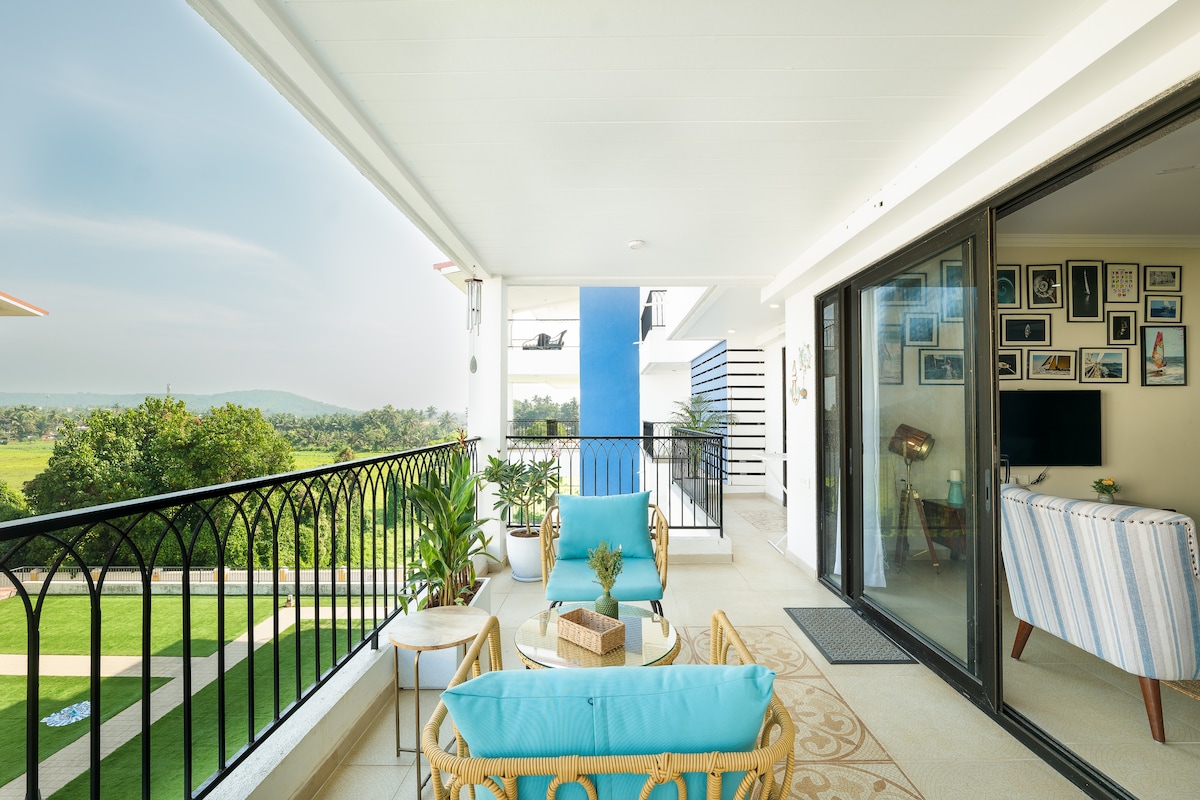 The BluJam Pod run by @BluJamGetaways is a beautiful studio apartment with a balcony in a premium housing complex. Located in the heart of North Goa, it is walking distance from Tito's Lane and Baga beach, and close to other tourist hotspots. The complex also provides 2 large swimming pools, a jacuzzi pool, a gym, dedicated parking, and a stunning field view to kick back and enjoy the Goa skies in! The BluJam Pod is a perfect spot for groups of 1, 2, 3 people.