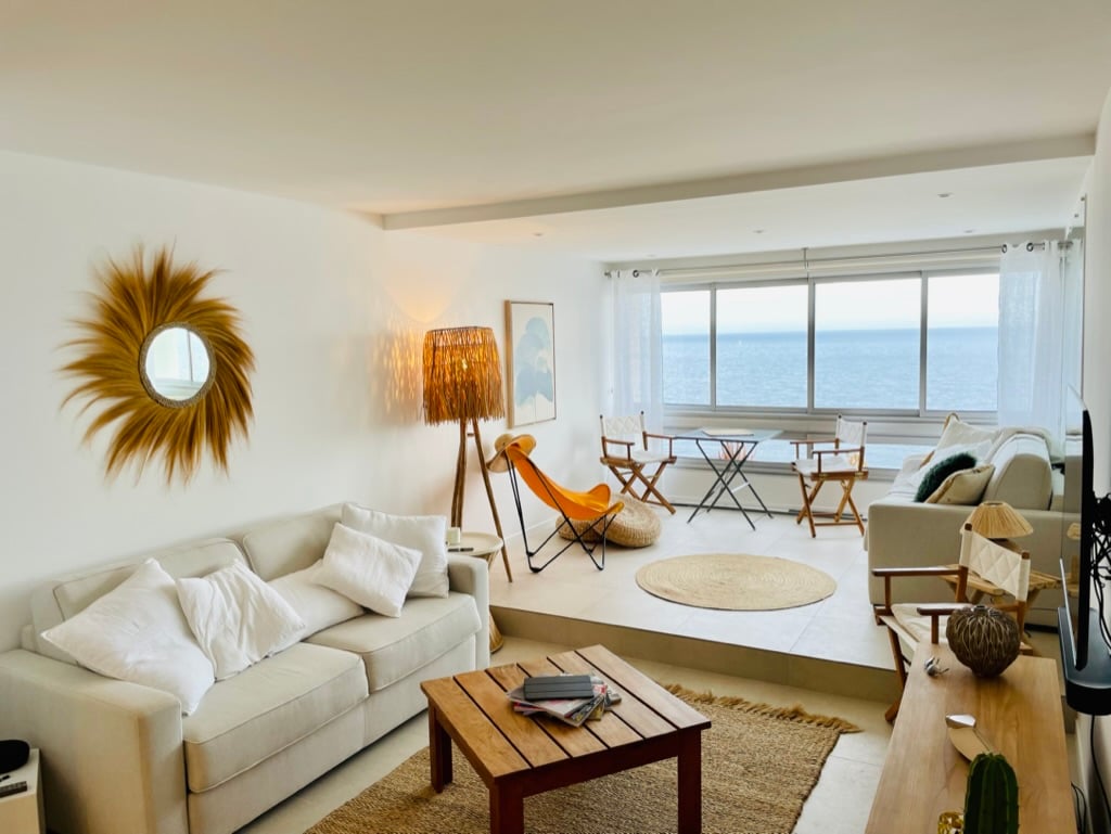 Venez découvrir notre location dans une petite résidence située à 20 mètres de la plage. Appartement T2 entièrement refait à neuf de 42 m2 situé au 2ème étage avec balcon et vue mer. Composé d’une cuisine ouverte sur séjour avec canapé convertible pour couchage quotidien en 160x200. D’une grande chambre avec couchage en 160X200, bureau pour le télétravail, dressing. SDB avec grande douche, WC séparé. TV, Internet fibre, Climatisations, 1 place de parking dans la résidence. Proche tous commerces