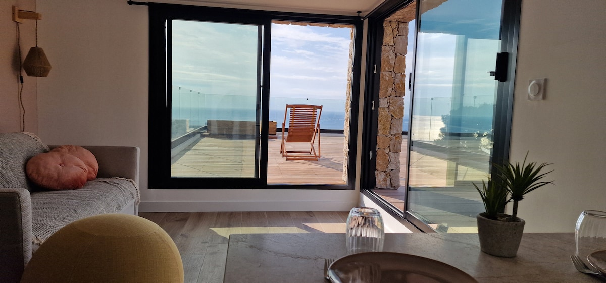 Studio de charme situé sur la Presqu'île de Cassis, face au Cap Canaille avec accès mer privatif direct. Profitez d'un accès direct aux calanques à pieds, d'un accès indépendant avec chemin lumineux, de plusieurs espaces vue mer à votre disposition : piscine à l'eau de mer, terrasse avec salon d'extérieur, terrain de pétanque, solarium les pieds dans l'eau, hamac, barbecue... Le studio dispose d'une belle pièce de 25m2, d'une kitchenette toute équipée séparée, et d'une salle de bain.