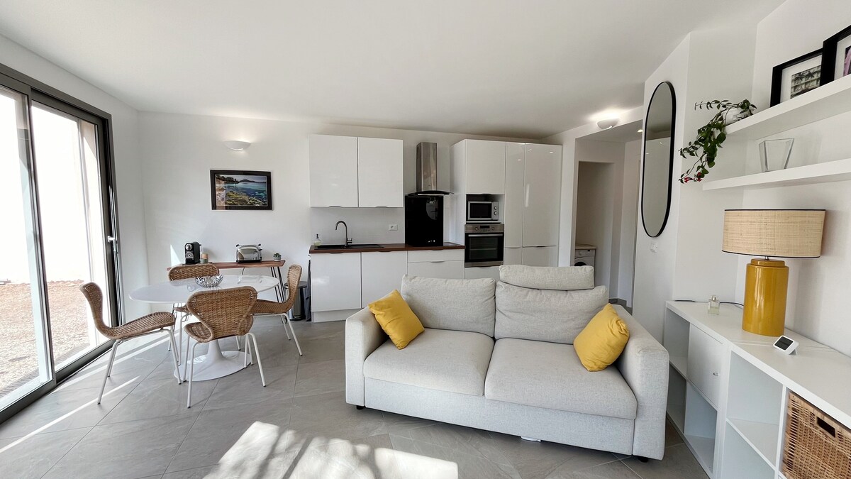 Nous vous proposons un charmant T2 de 63m2 tout confort, avec jardin privatif, à proximité immédiate des calanques . L'appartement est climatisé et dispose de tout le nécessaire afin de passer un agréable séjour. Stationnement gratuit à l'extérieur de la résidence. Commerces de 5 à 15 mn en voiture. En option, à régler à votre arrivée : *Linge de maison : 15 €/personne *Garage sécurisé : 7€/jour Ménage non inclus /!\ POUR LES SEJOURS DU 15/06 AU 15/07 : 7 NUITS MINIMUM REQUISES.