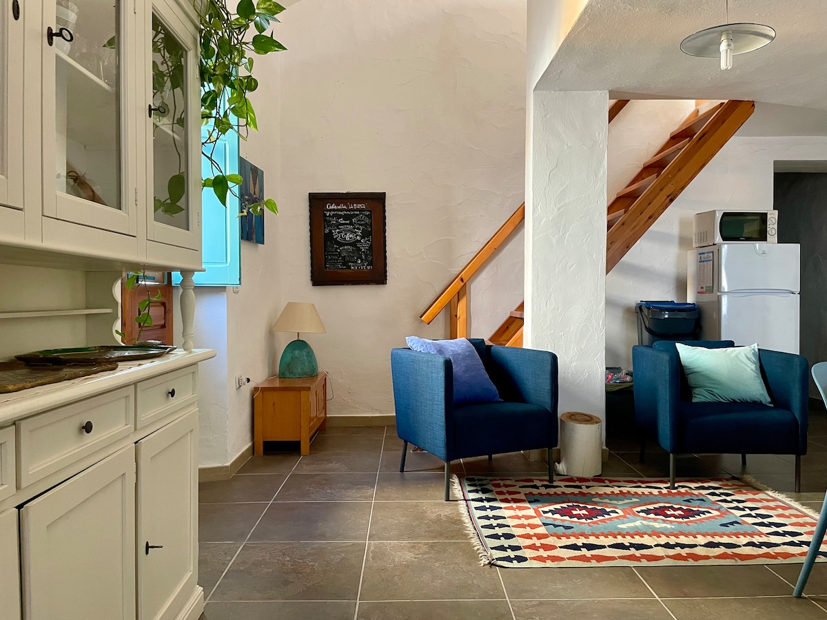 Immaginate una casetta bianca e celeste, come tutte le casette di questo paesino, con balconcino alla "Romeo e Giulietta" da cui salutare il vostro partner che è andato a comprare il pane appena sfornato dal forno sotto casa, mentre voi sorseggiate il vostro caffè guardando il mare, lasciando che il vento vi ispiri a decidere in quale punto dell'isola sarà calmo il mare per un tuffo e immaginate i colori del tramonto la sera mentre brindate all'amore e alla vita con un bicchiere di Carignano