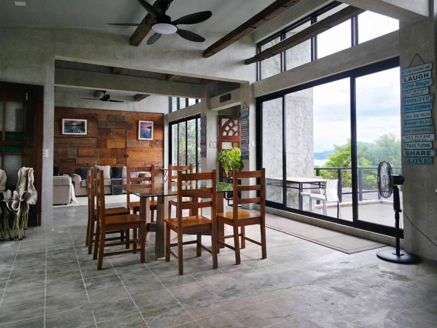 A modern industrial private villa where luxury meets serene escape. Nestled in Tagaytay-Calamba Road (yes, you get to enjoy Tagaytay weather without going through Tagaytay traffic), the place is accessible via several exit points from Metro Manila - Mamplasan/CALAX, Sta. Rosa, Greenfield/Eton or Silangan. Only 10 mins. fr. Nuvali and 4 mins. fr. the old Marcos Twin Mansion, you get to enjoy a breath of fresh air and relaxing picturesque view of Mount Makiling, Laguna de Bay, Talim Island & MMla